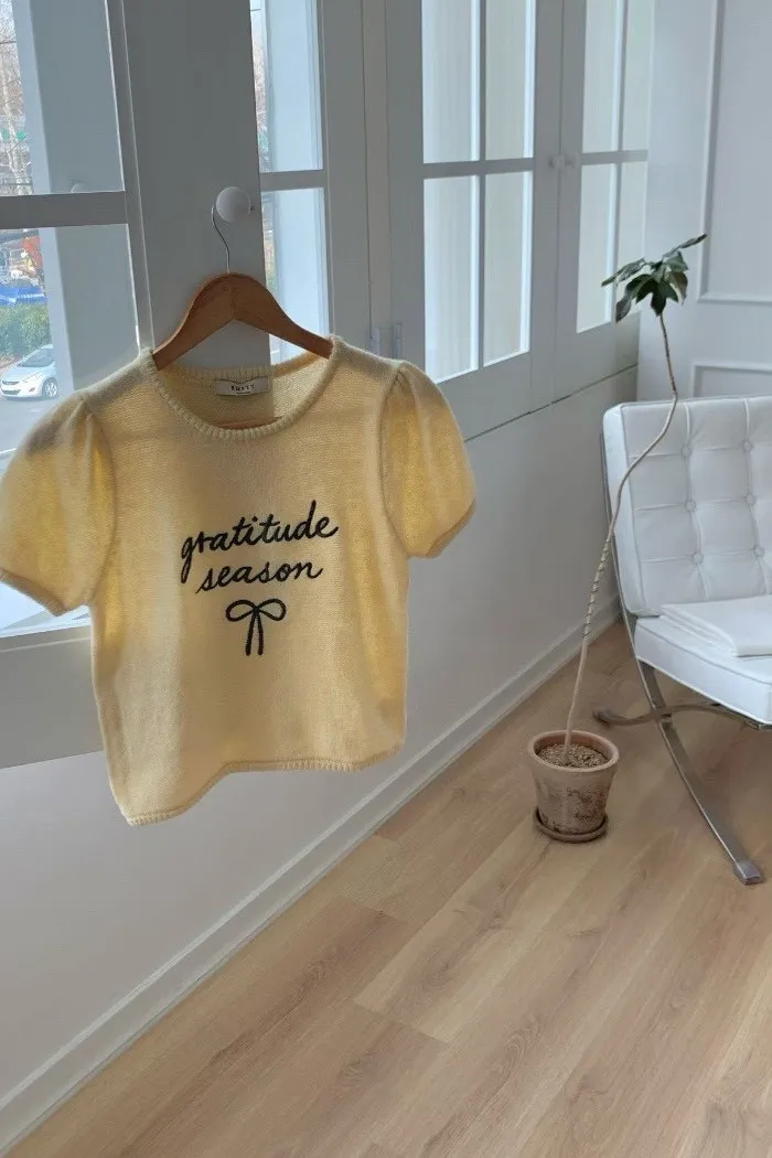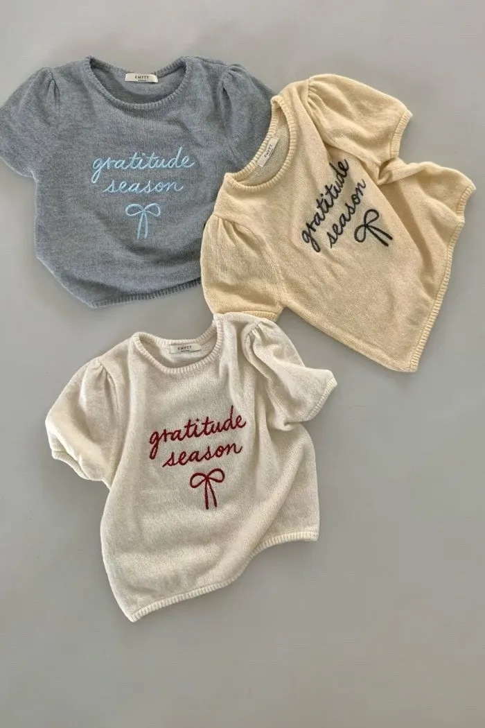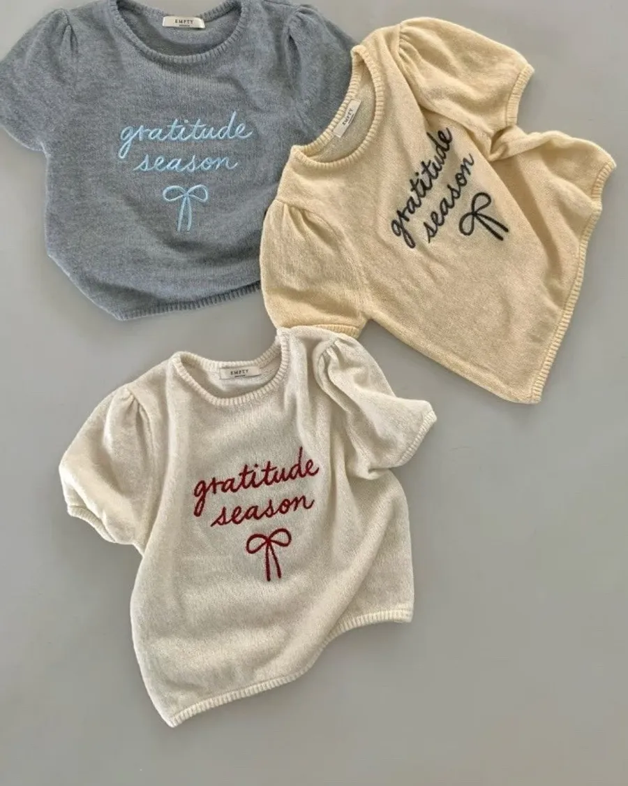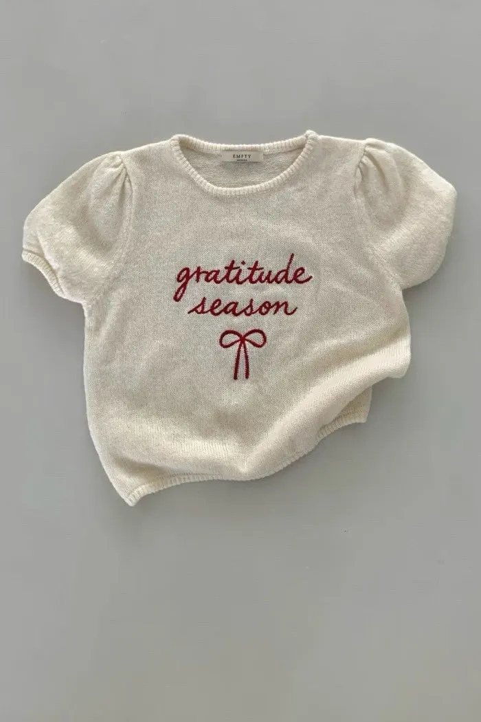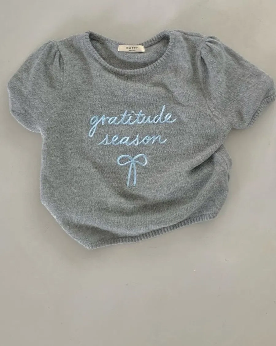 胸前以手寫感刺繡「gratitude season」字樣點綴,