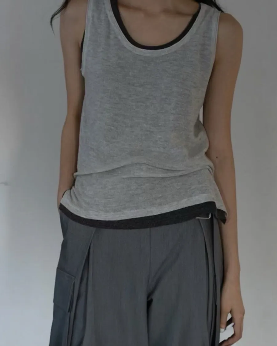 這款背心以俐落剪裁與柔軟面料打造,貼合身形卻不緊繃,呈現自然流動的輪廓感,讓日常穿搭多了一份輕鬆與高級氛圍