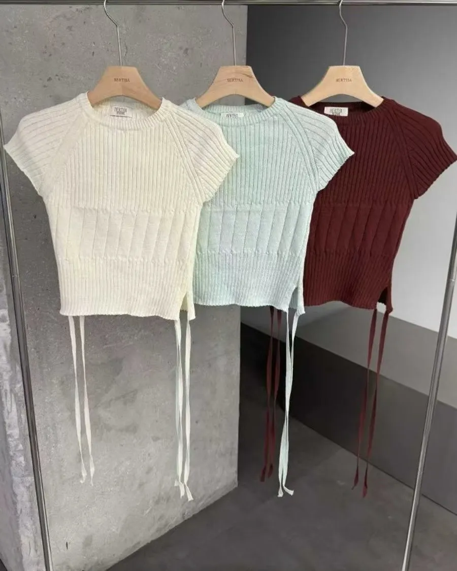 以細緻羅紋織法打造的貼身針織上衣,透過縱向紋理自然修飾身形曲線,在柔軟包覆之中展現俐落線條,讓整體比例更顯輕盈與精緻。