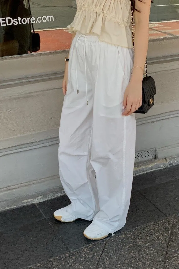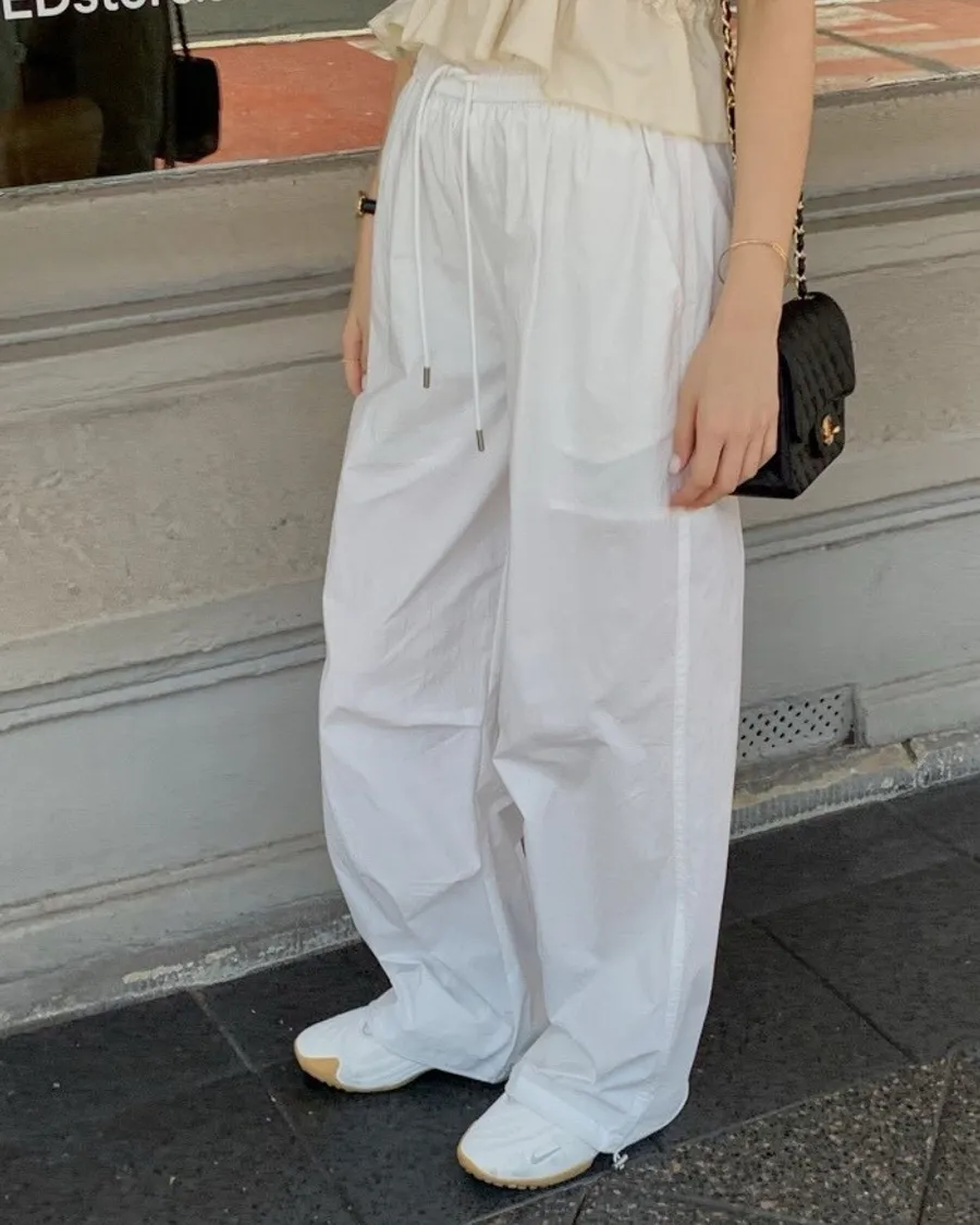 輕霧感抽繩寬版長褲