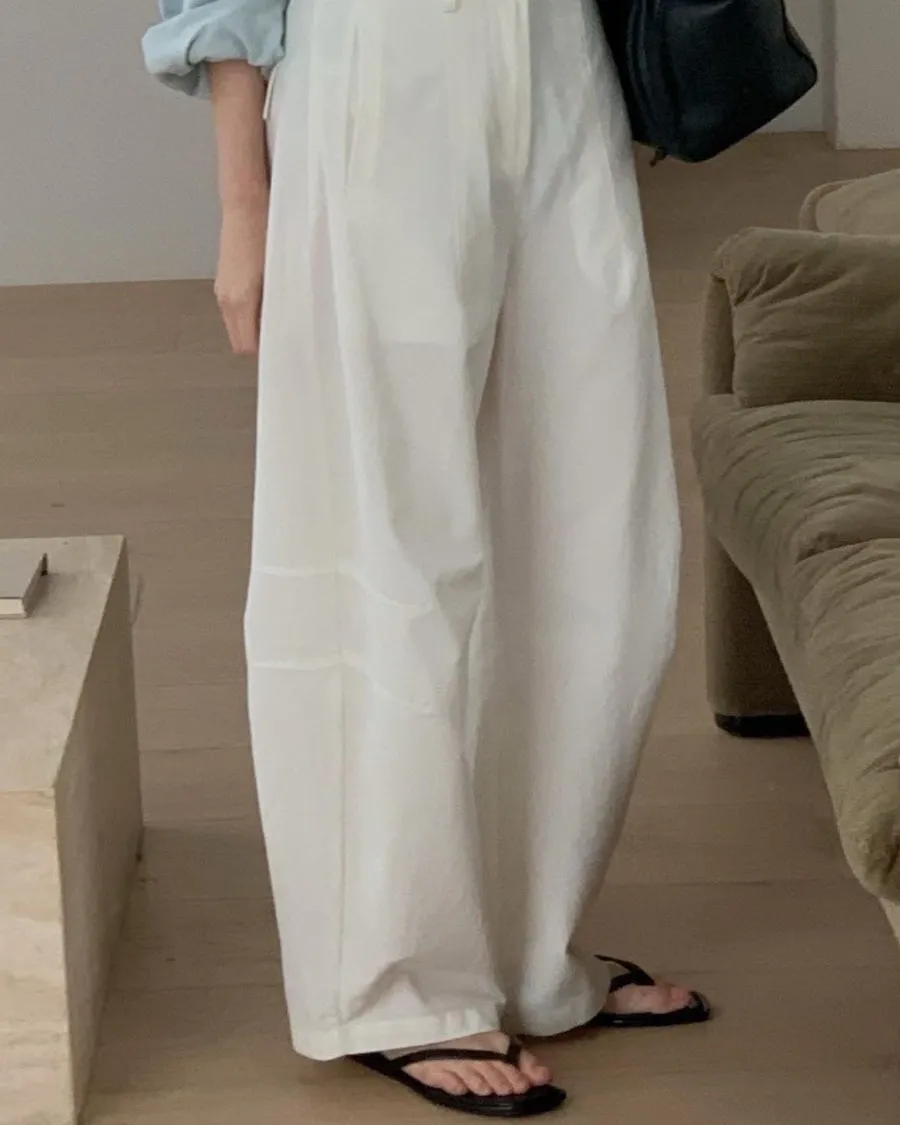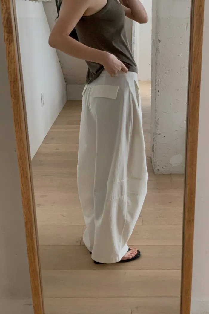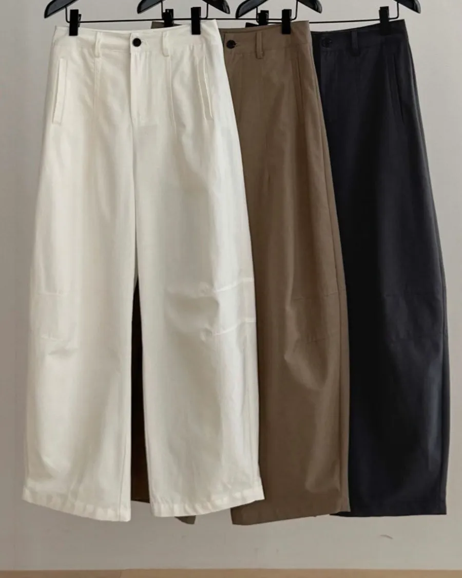 寬版褲型,從腰線向下延展出流暢輪廓,在行走之間保有份量感卻不顯厚重。褲身結構乾淨,細節收斂,呈現出低調而穩定的質感。