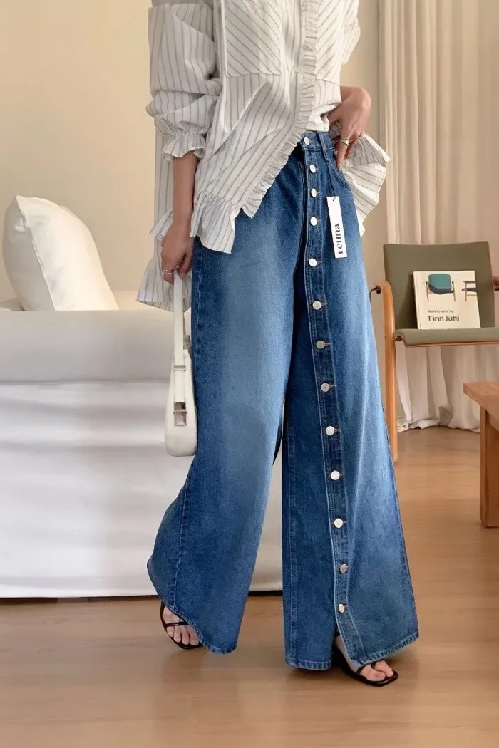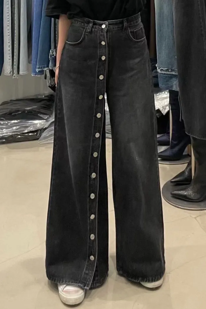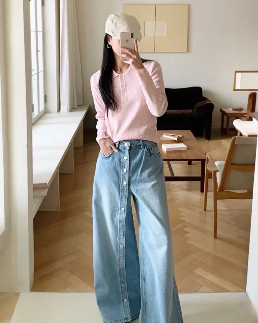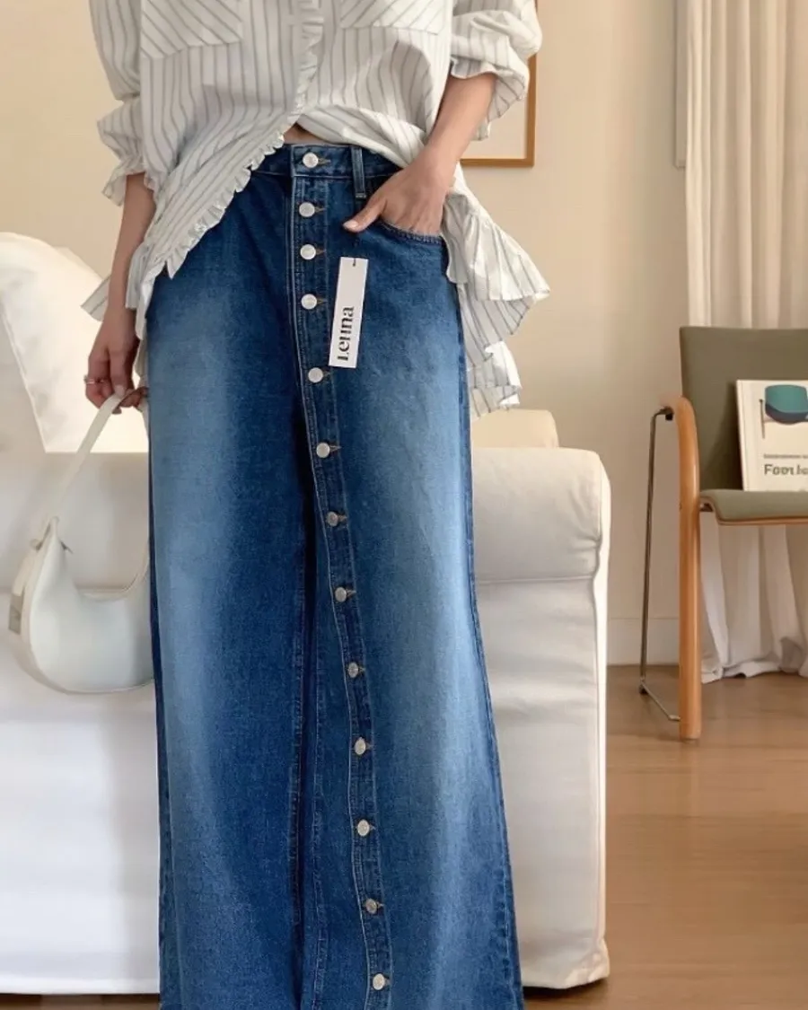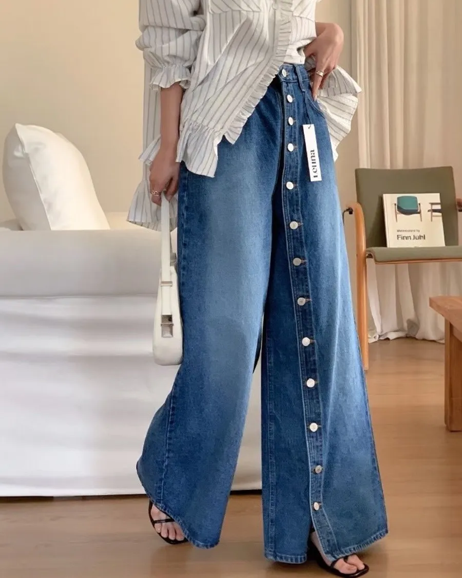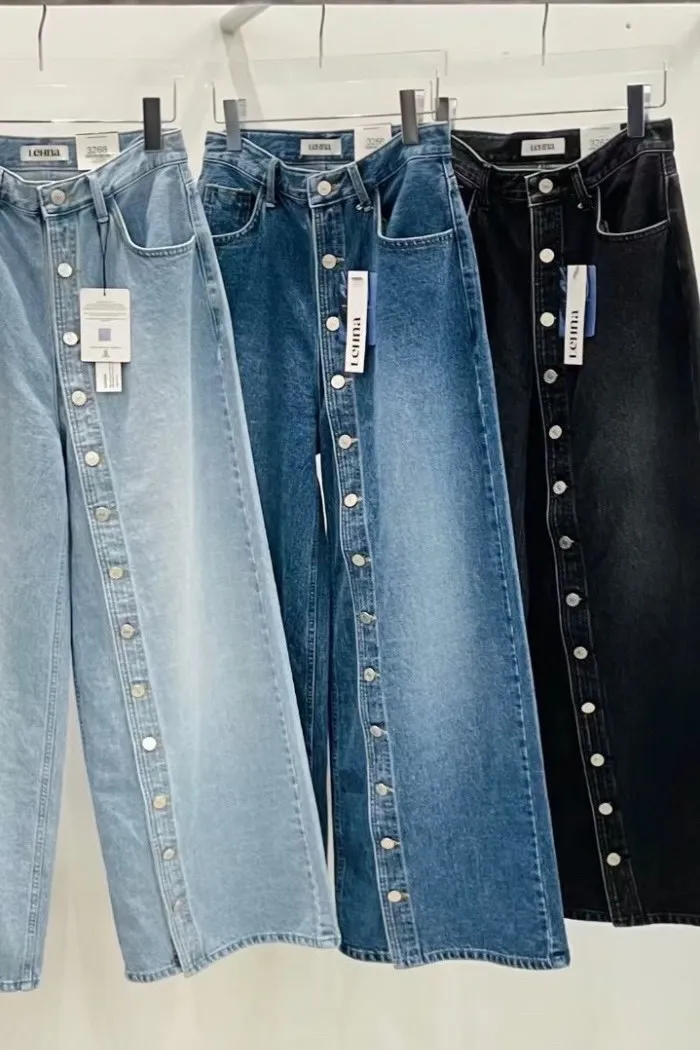 ✦ 立線排釦牛仔寬褲 ✦