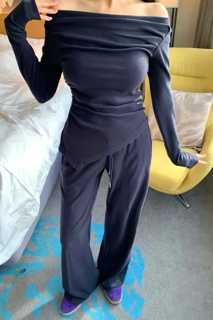 慵懶垂墜斜肩氣質套裝