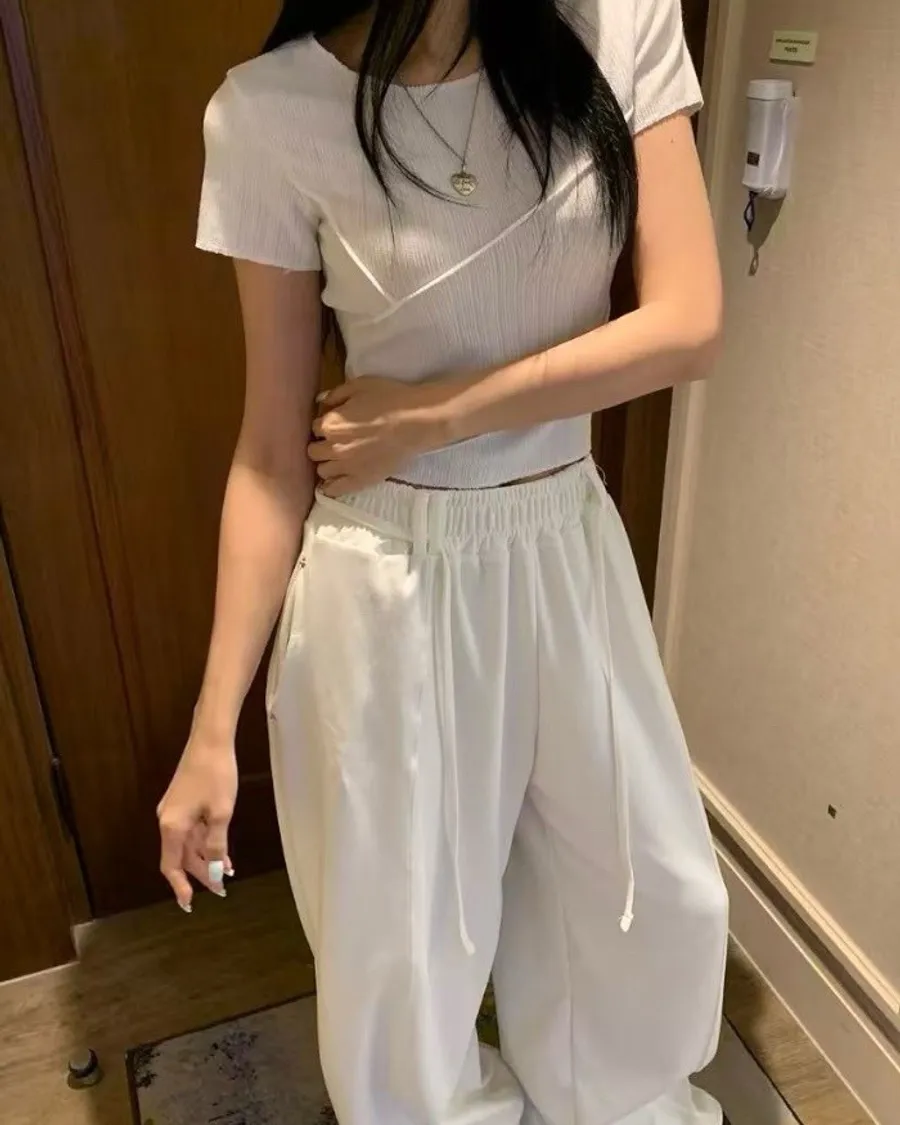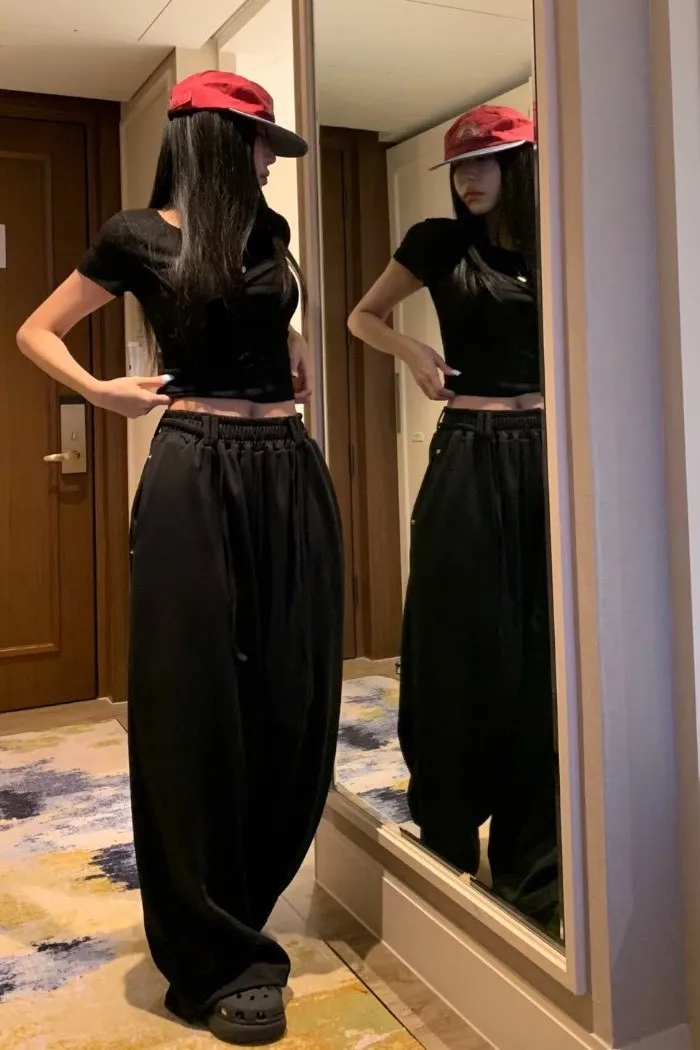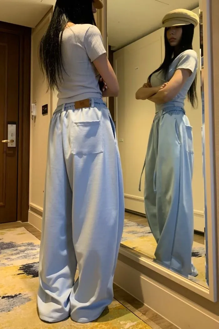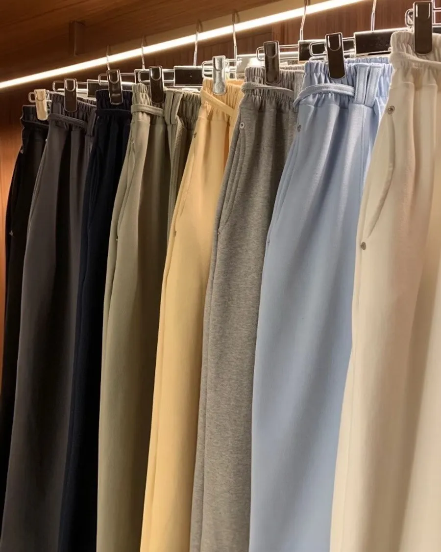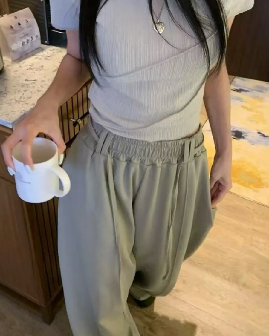 這款寬版垂墜褲,以柔順布料打造自然流動的輪廓,從腰線延伸至褲腳,呈現乾淨俐落的直線比例。高腰鬆緊設計,兼顧舒適與修身效果,穿上後自然拉長腿部線條,比例更顯修長。