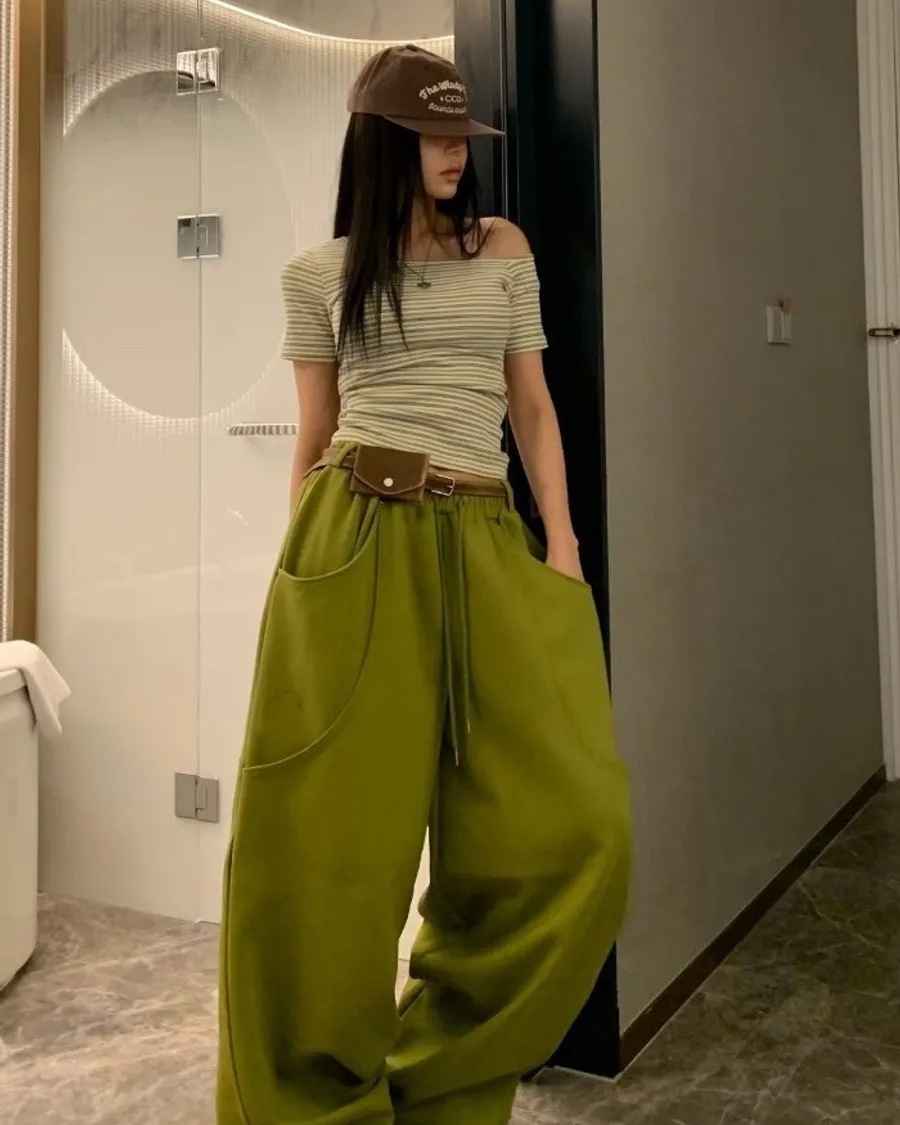 這款以棉質面料打造,保留棉料的柔軟與舒適,同時透過立體剪裁,讓整體輪廓更有結構感。從腰際延伸至褲腳,呈現自然弧線的寬版輪廓,不貼腿、不顯胯,修飾效果非常明顯