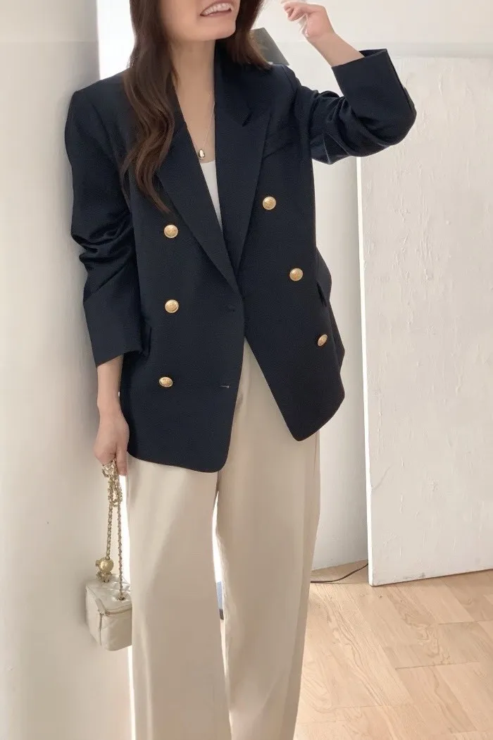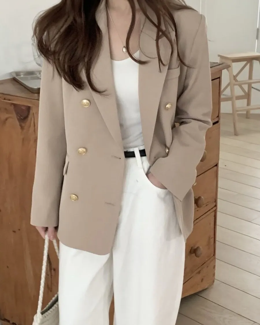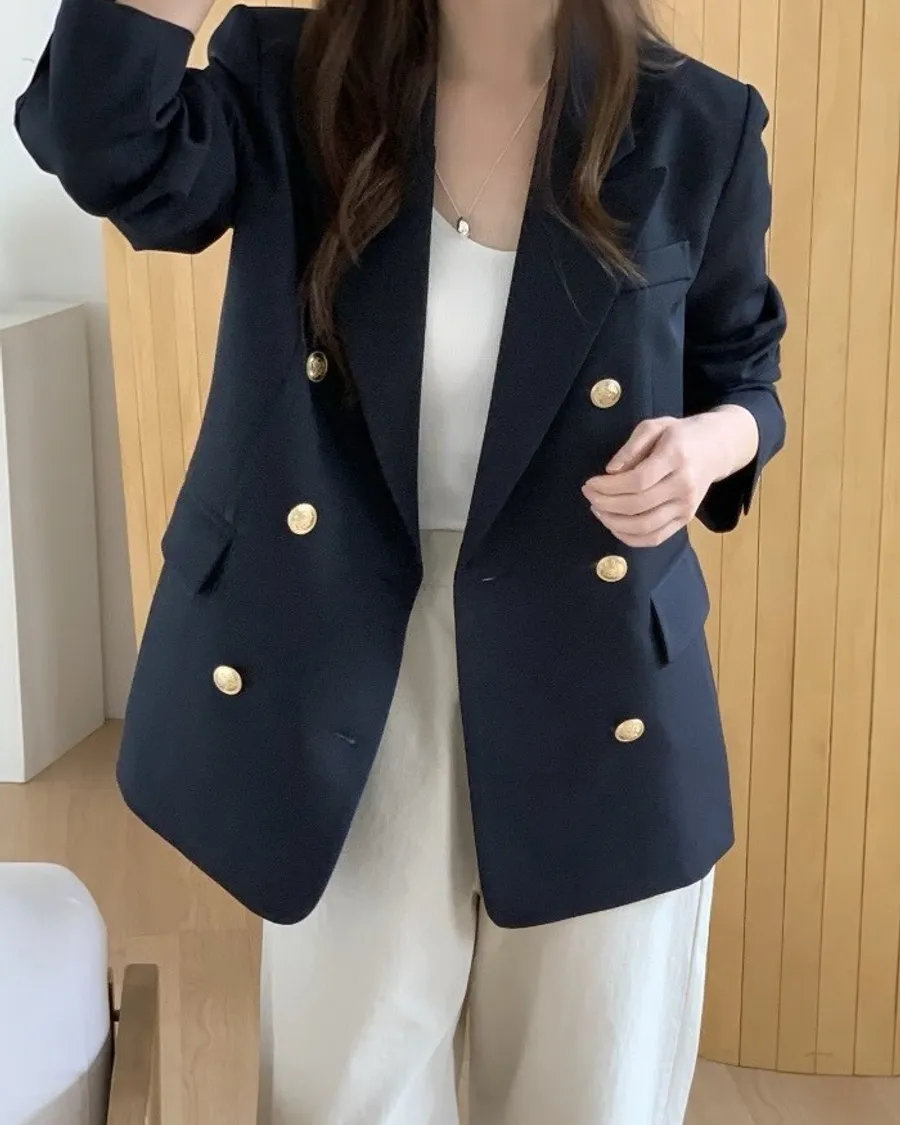 法式金釦雙排西裝外套