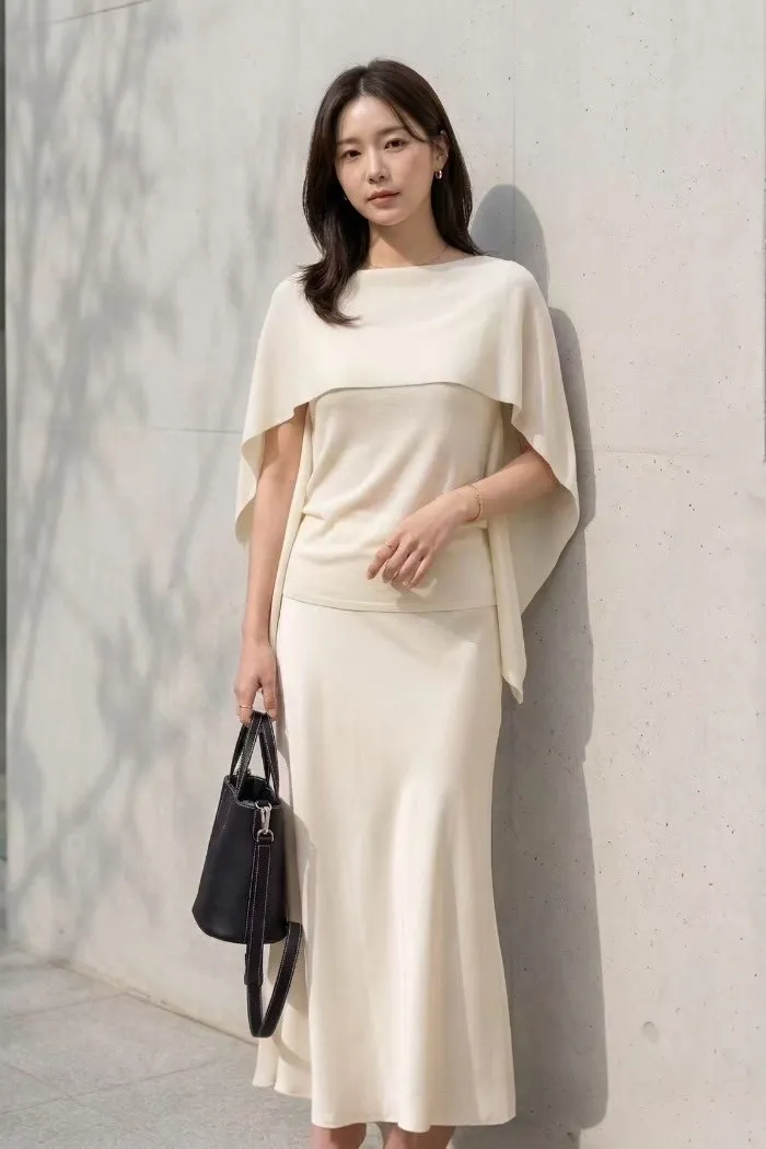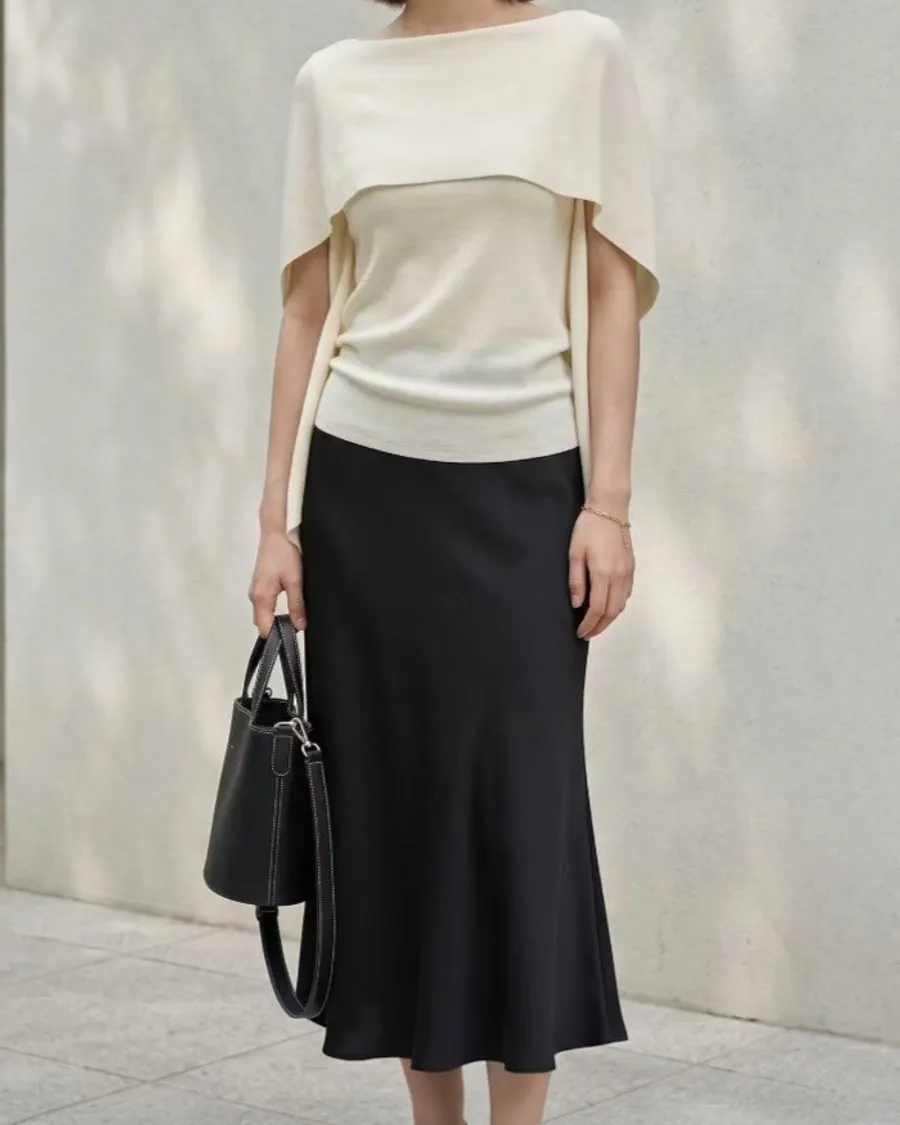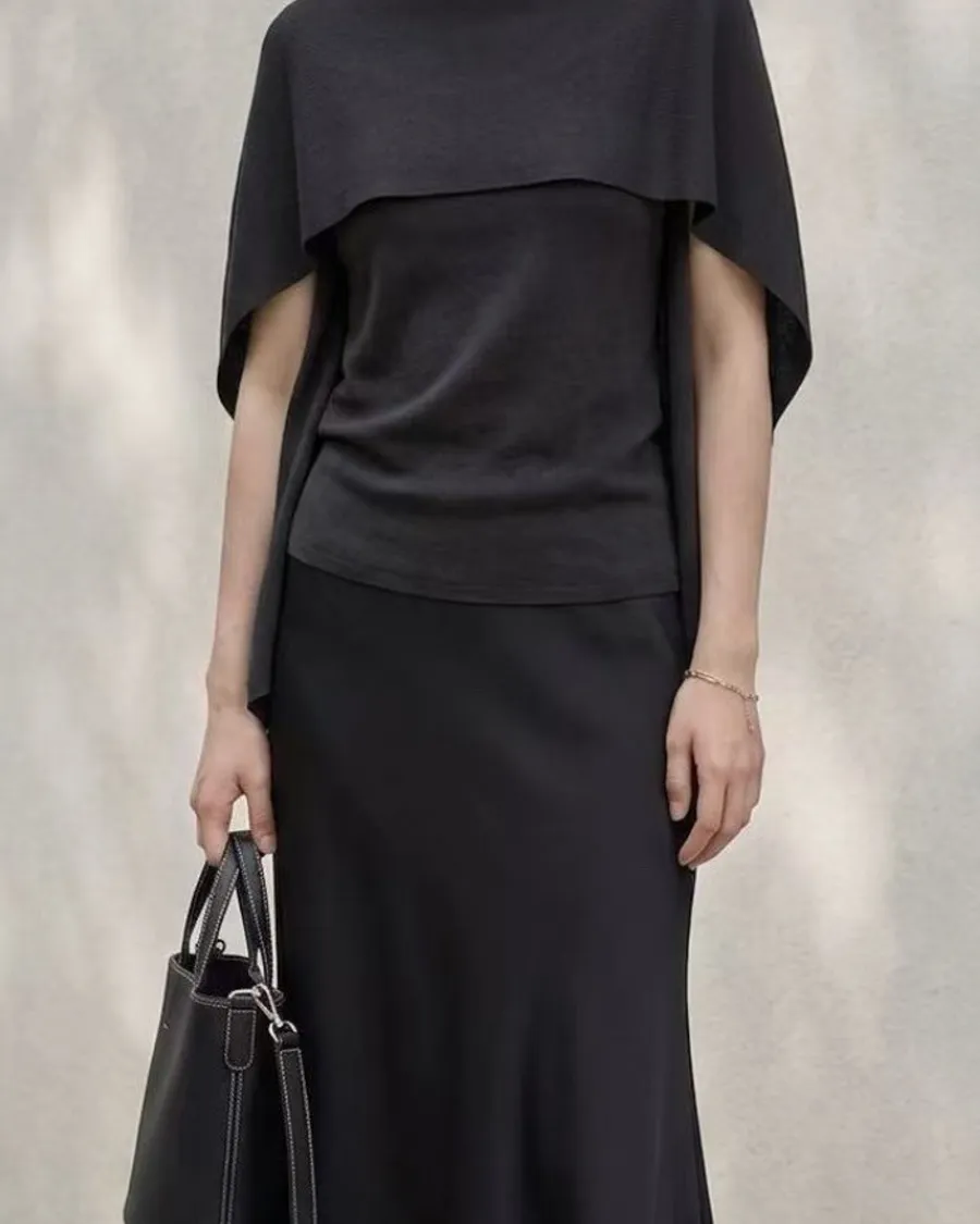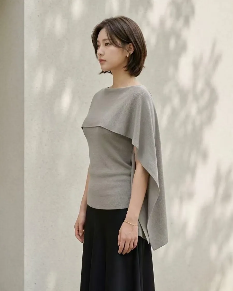 極簡流線斗篷針織上衣