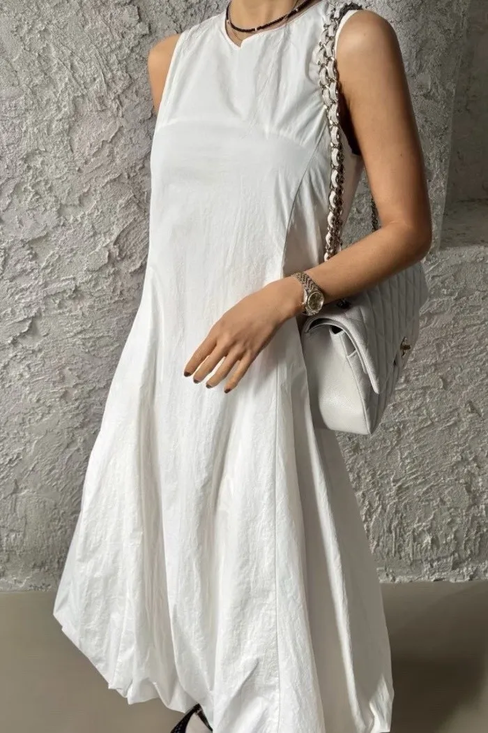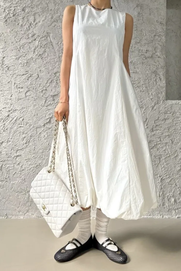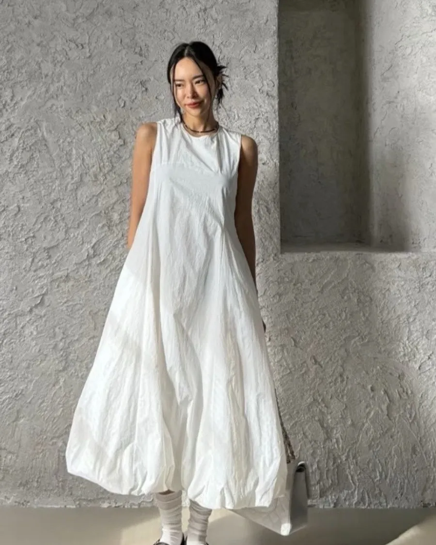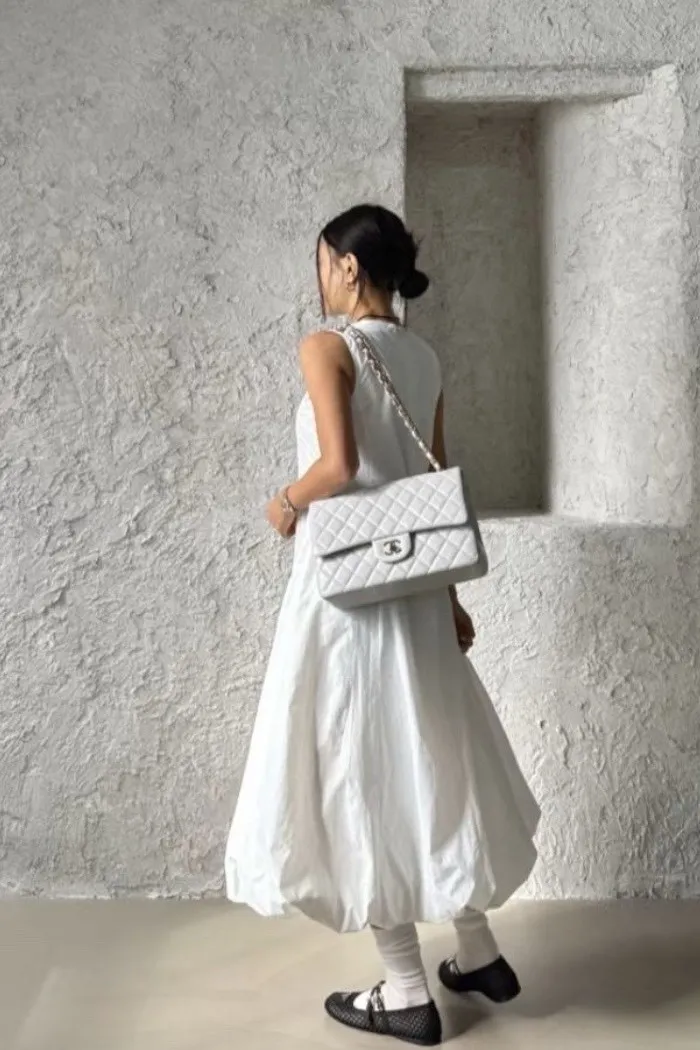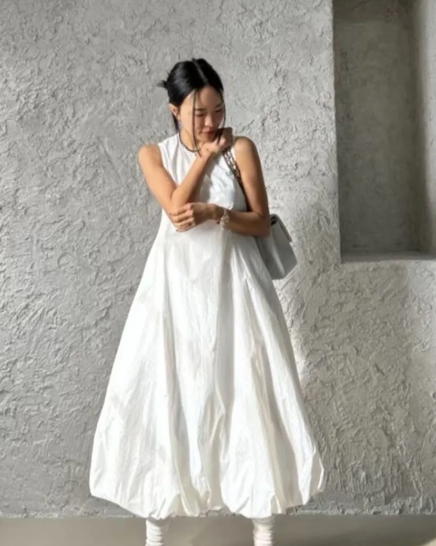 以極簡設計結合立體剪裁,打造出充滿空氣感的輪廓洋裝。整體線條乾淨純粹,透過布料自然撐起的弧度,展現低調卻極具辨識度的時尚感。