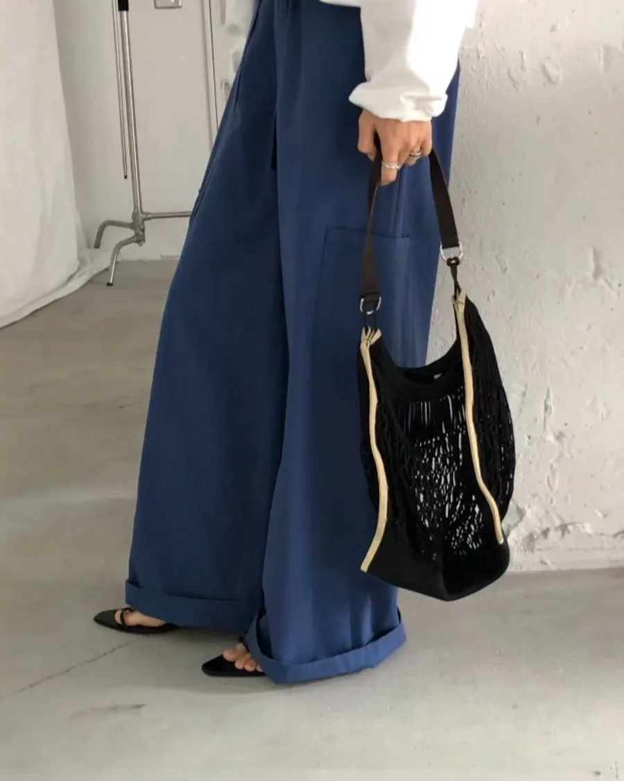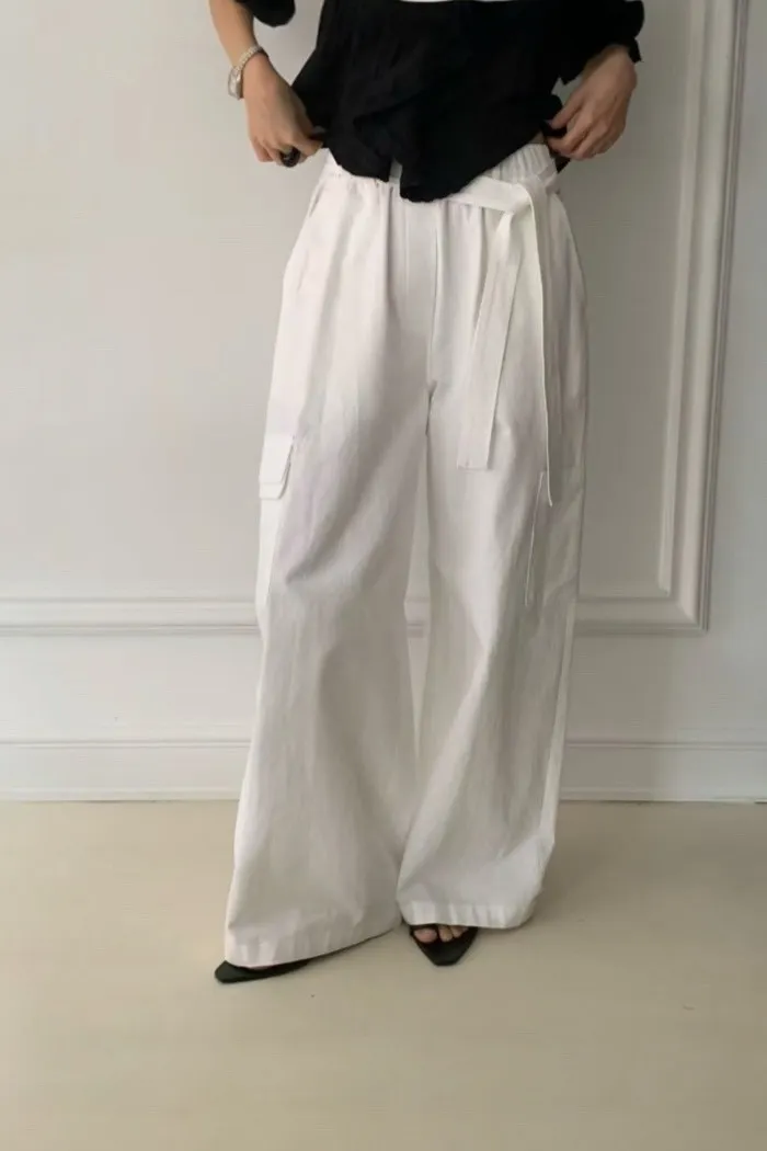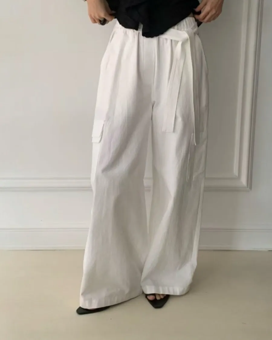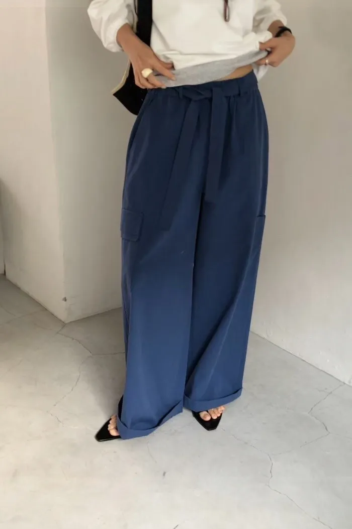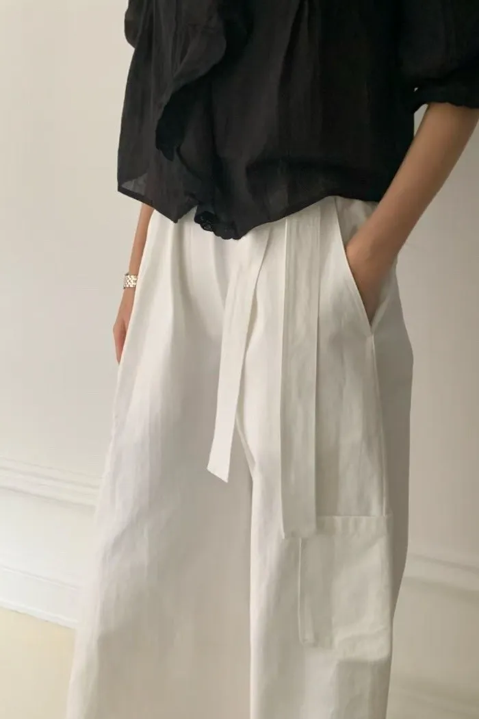 法式鬆弛感綁帶寬褲