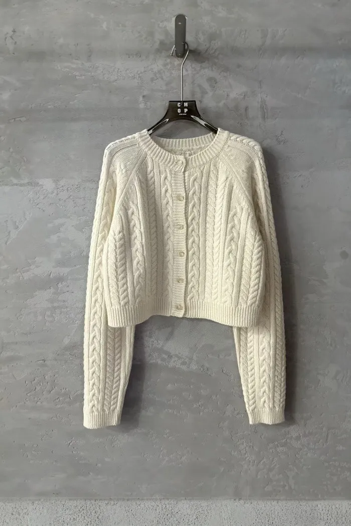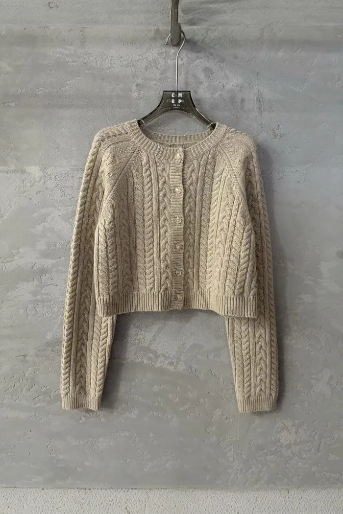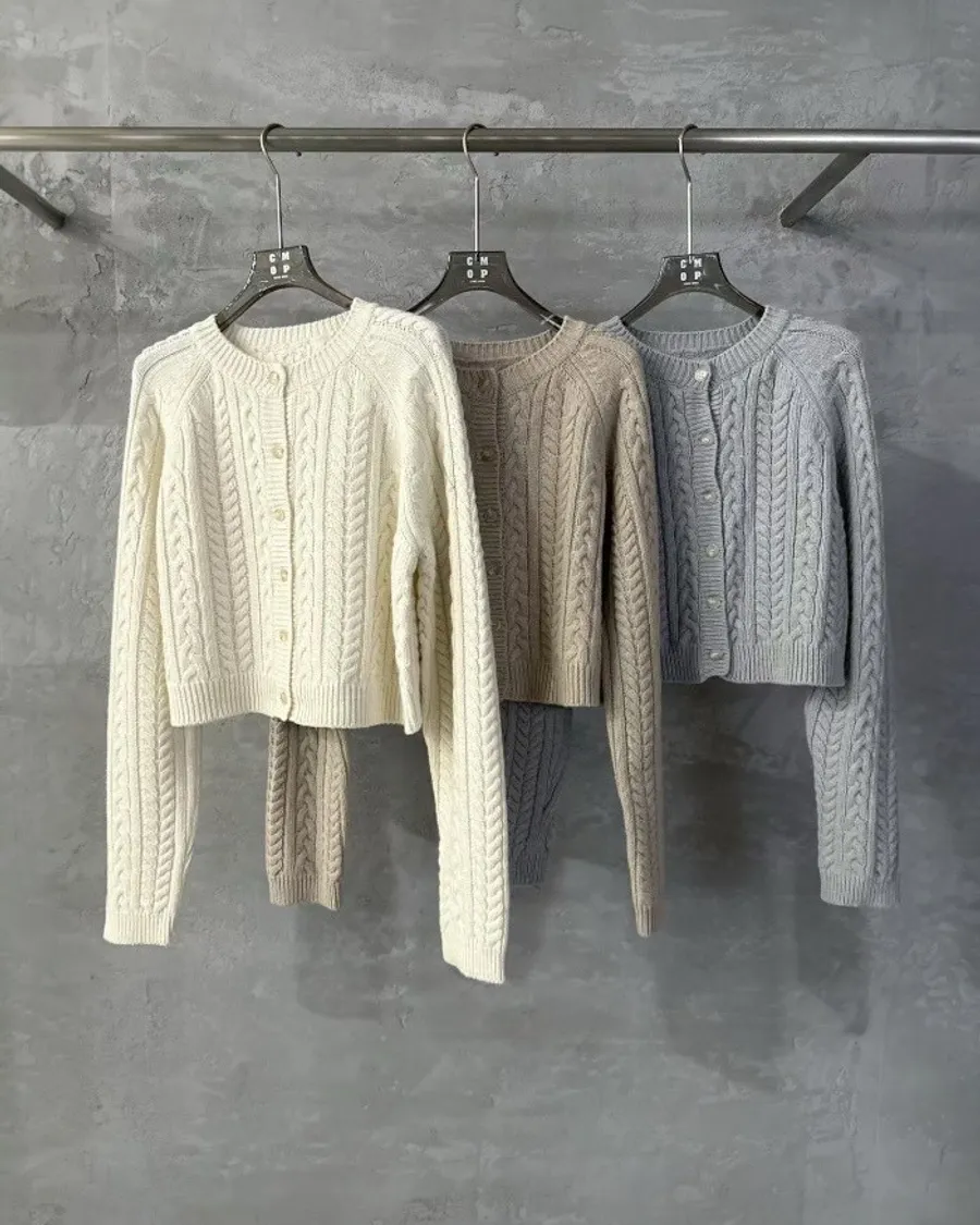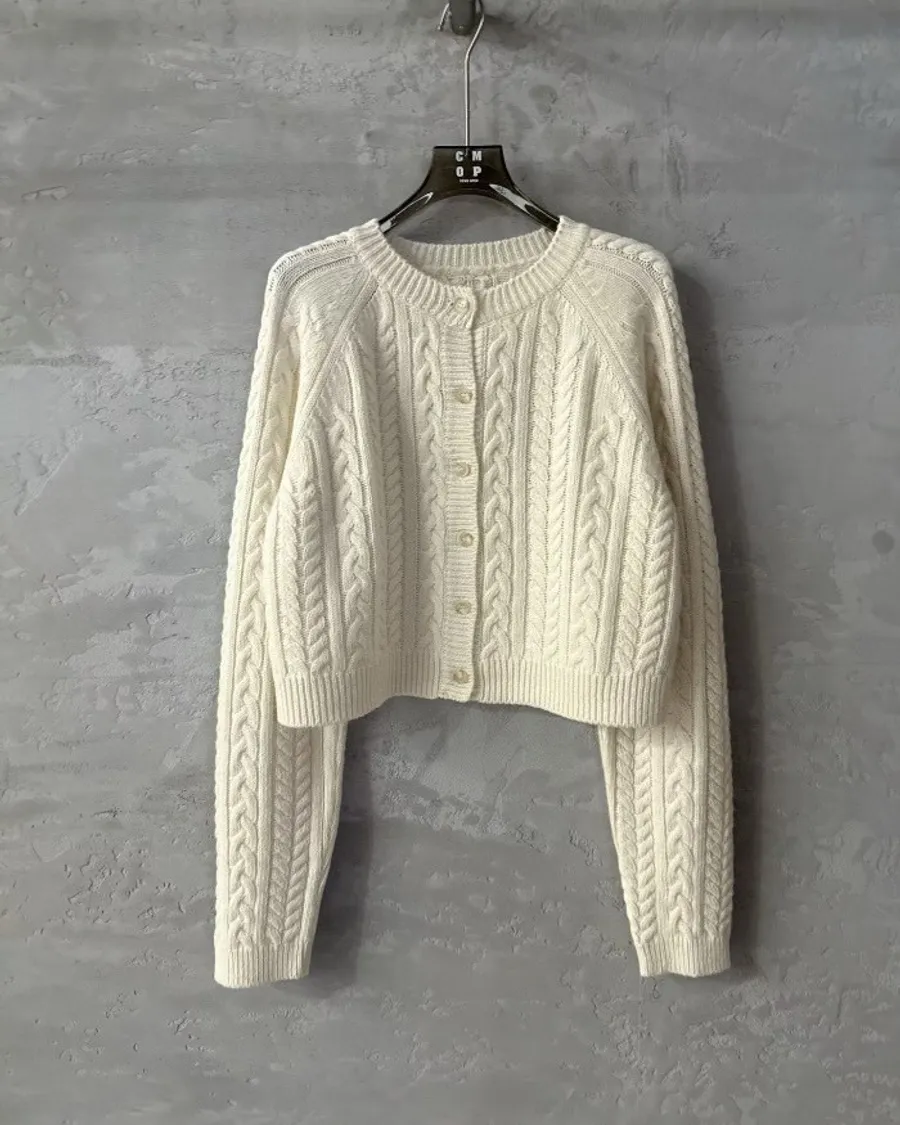 🤍 經典百搭立體麻花短版針織外套