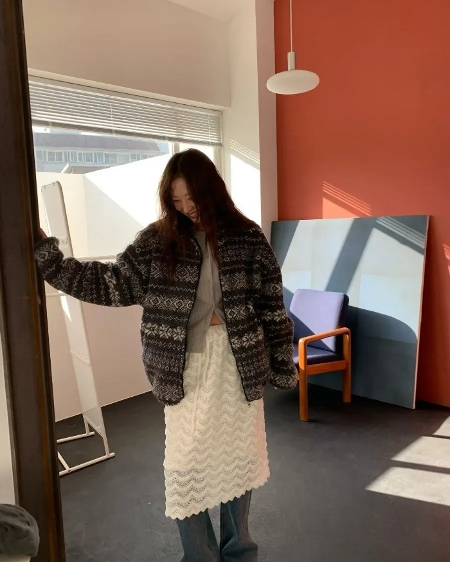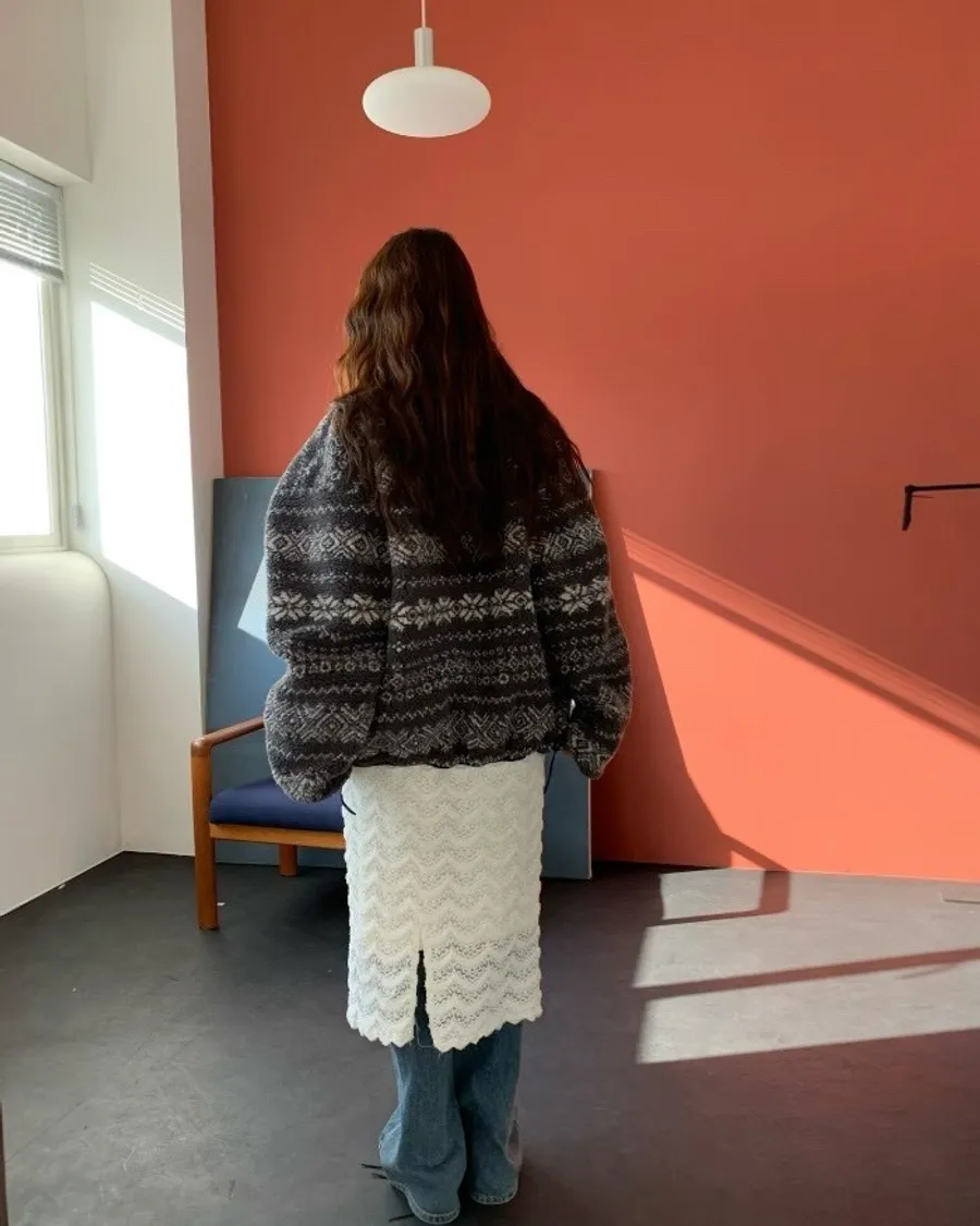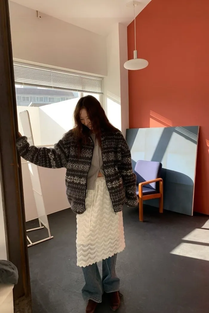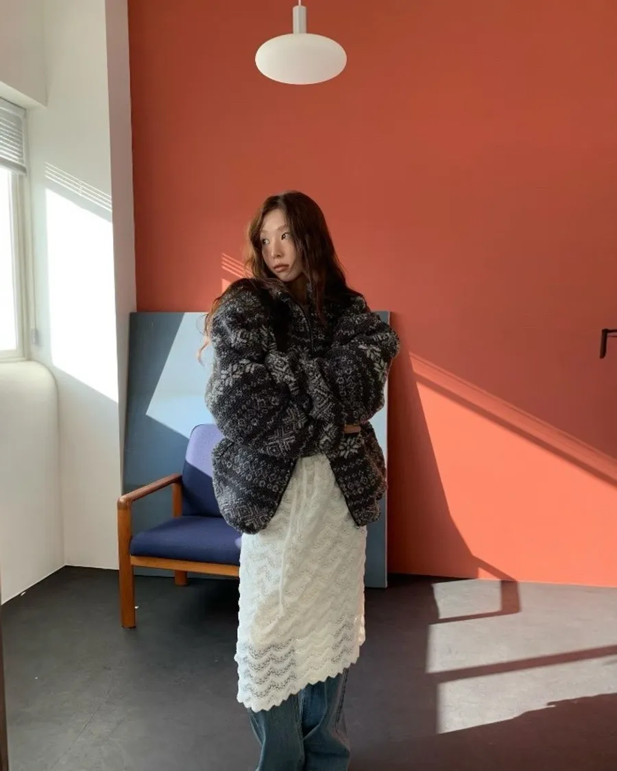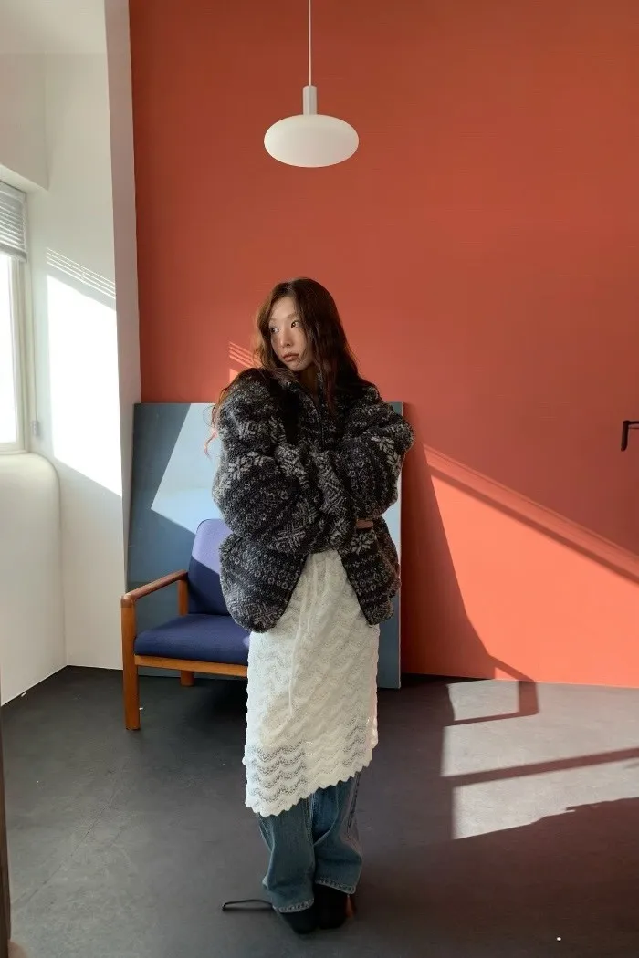 北歐雪花紋羊羔毛外套
