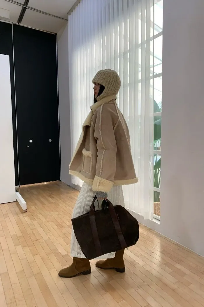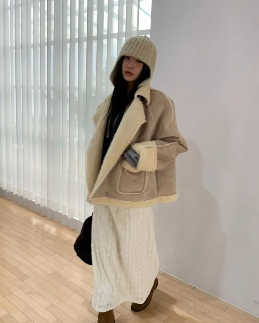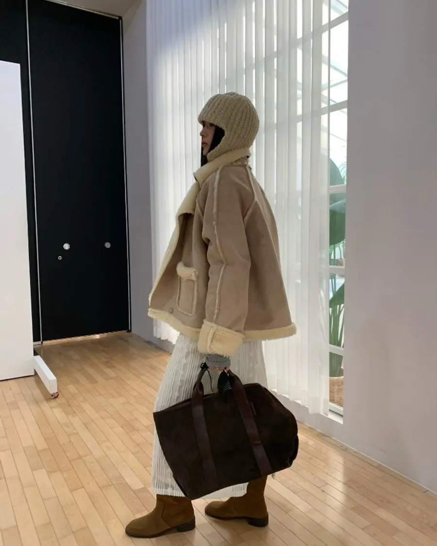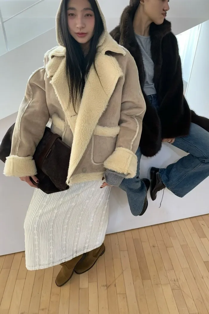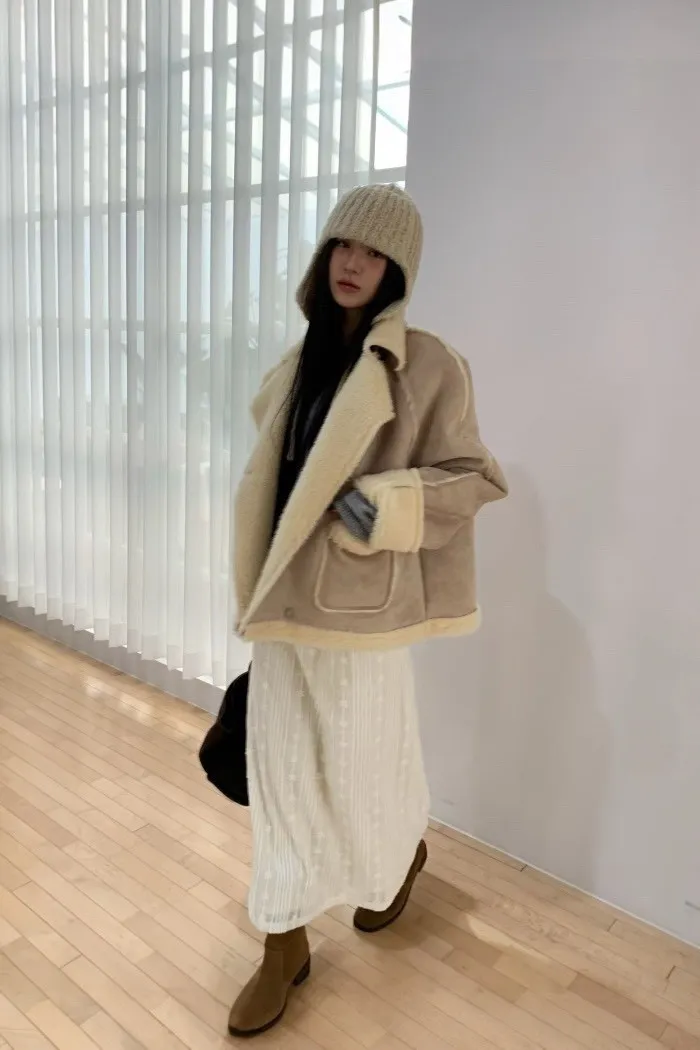 奶油系反折羊羔絨外套