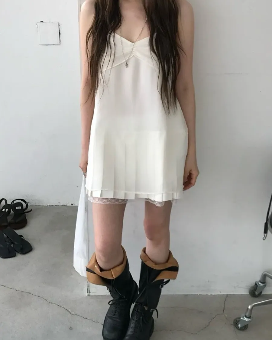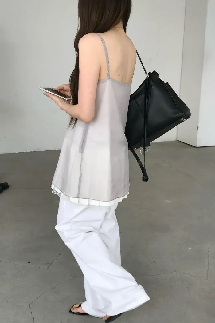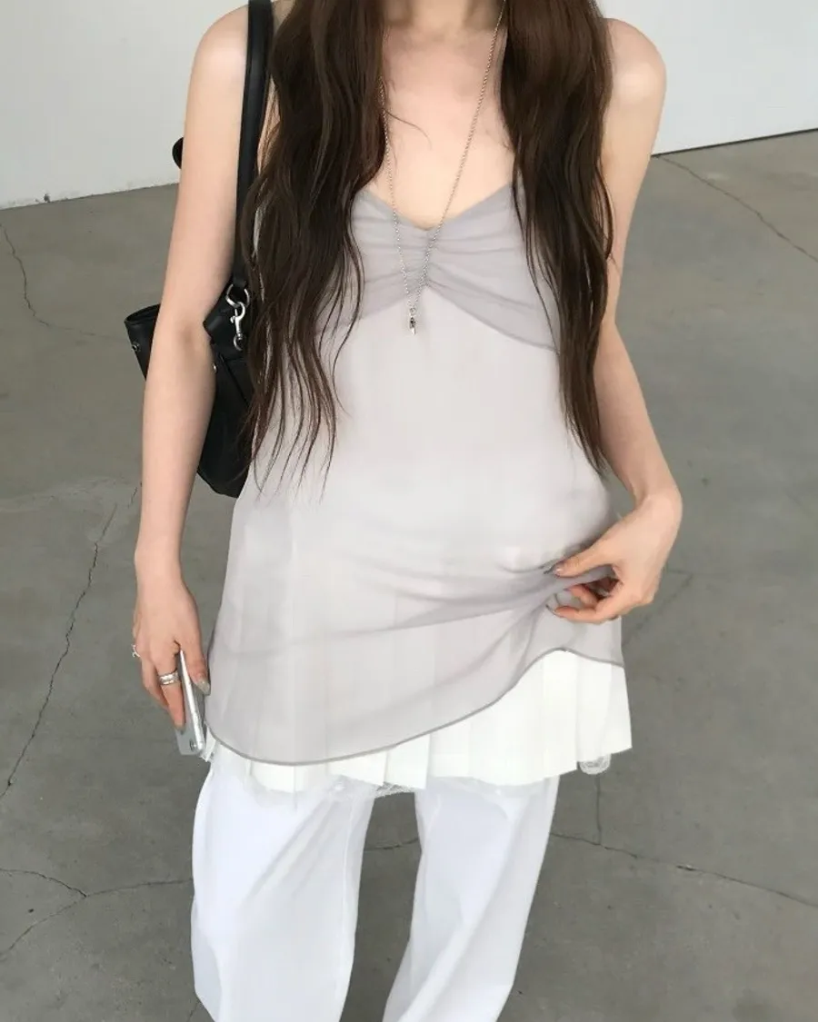 輕透層次細肩帶背心洋裝