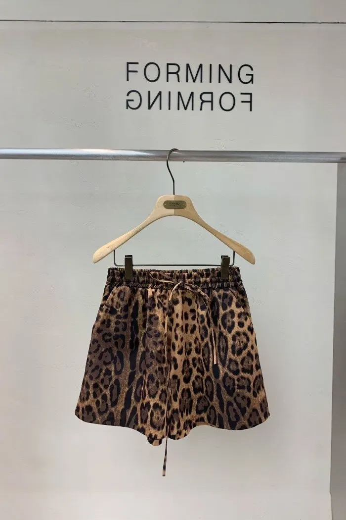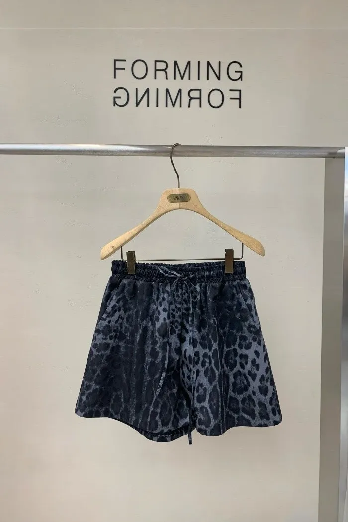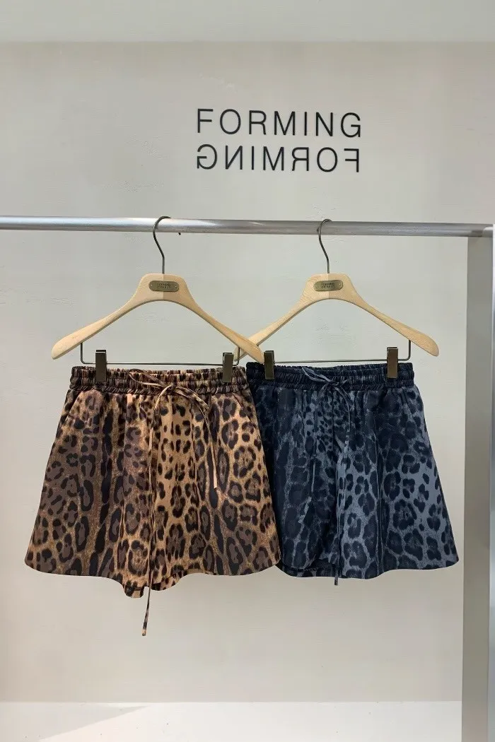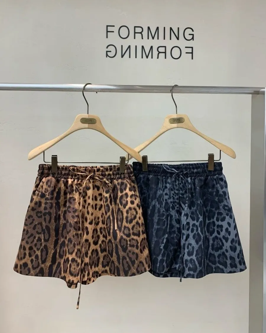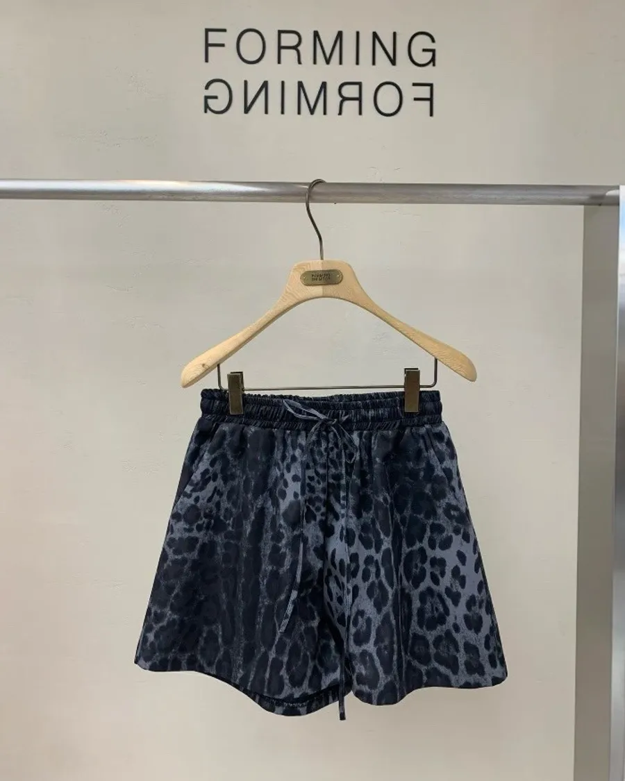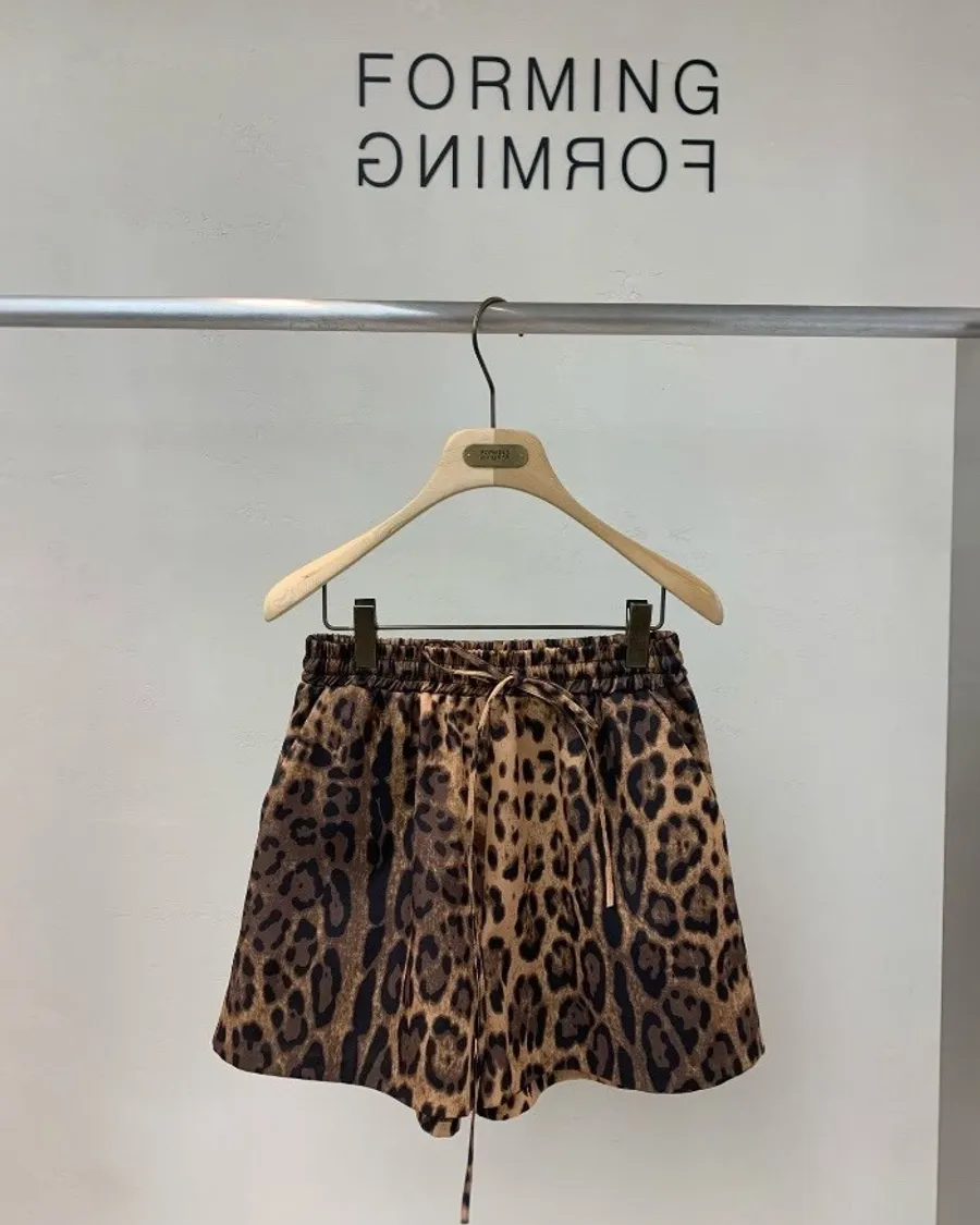 時尚豹紋抽繩短褲
